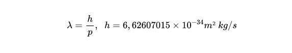 De acordo com a teoria de De Broglie, cada partícula tem associada uma onda de matéria, chamada de onda de De Broglie, cujo comprimento de onda está relacionado ao momento linear da partícula. O momento de De Broglie, simbolizado por λ (lambda), é calculado usando a equação:
