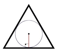 Nesse caso, o apótema também é a bissetriz e a altura de um triângulo equilátero. Além disso, nesse caso particular, o valor do segmento de reta que une o lado do triângulo equilátero e o seu centro geométrico pode ser calculado como a metade do raio da circunferência que circunscreve esse polígono.