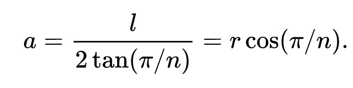 Note que há, também, a presença de identidades trigonométricas. Por exemplo, a tangente e o cosseno. Elas são obtidas por meio da formação de um triângulo retângulo cujos lados são: o apótema, o lado do polígono e o raio do círculo circunscrito.